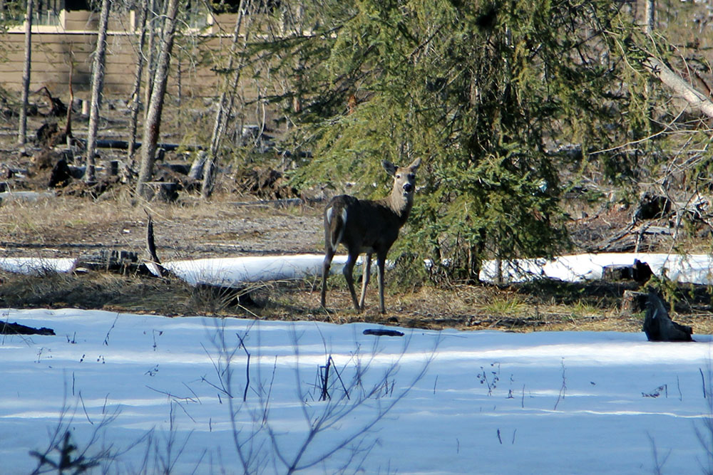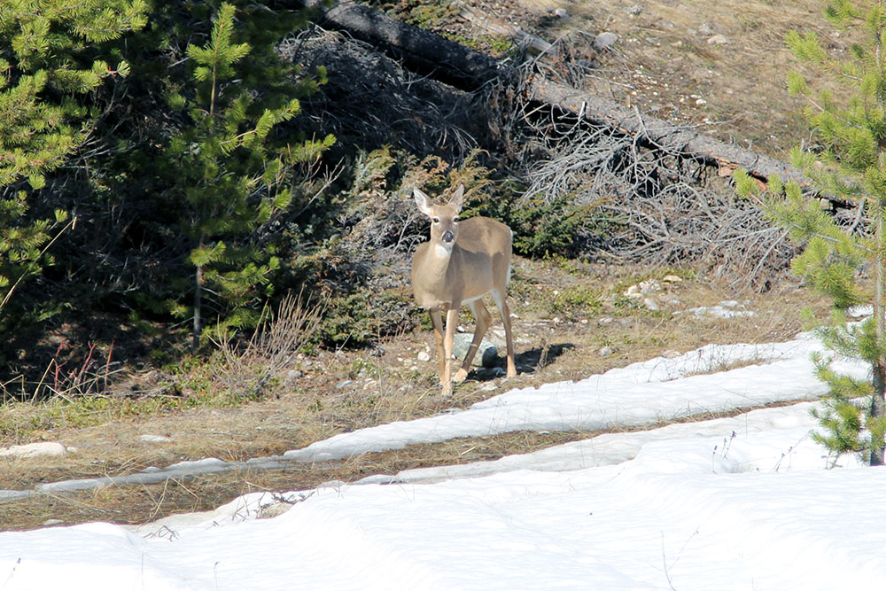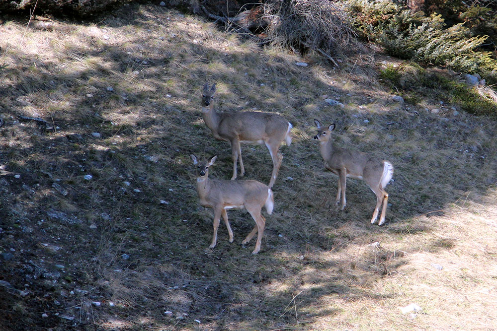 Bevor wir jedoch auf den Camping Platz in Lake Louise zurückkehrten, beschlossen wir noch einige Kilometer auf dem Bow Valley Parkway zurückzulegen. Dies ist die Nationalparkstrecke von Lake Louise nach Banff. So fuhren wir wie echte Sonntags-Fahrer knapp einen Drittel der Strecke in den Süden und genossen den Anblick einiger Rehe welche sich zum Grasen nahe der Strasse ablichten liessen.